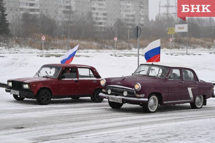 Почти два десятка автомобилей выстроились в колонну, чтобы проехать...