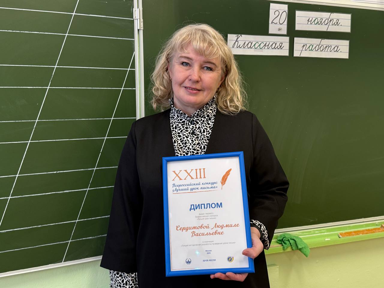 Учитель начальных классов МБОУ «СОШ» с. Объячево Людмила Сердитова стала лауреатом в номинации «Лучшая методическая разработка урока письма». Творческая работа...