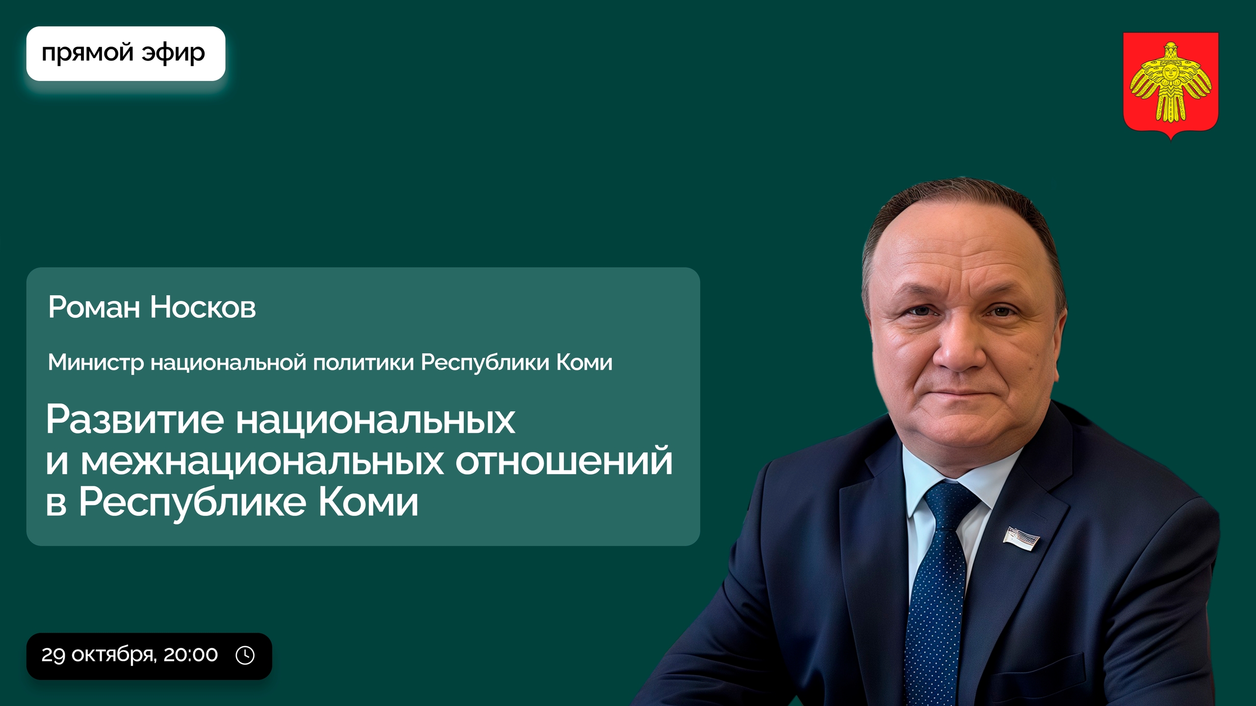 Присоединиться к эфиру можно будет 29 октября в 20:00 в пабликах в соцсетях «Республика Коми», «Юрган», «ЦУР Республики Коми», а также на телеканале...