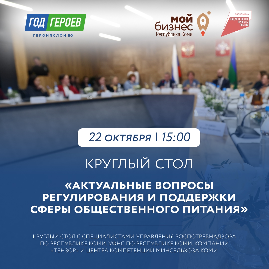 22 октября в Центре «Мой бизнес» Коми пройдёт круглый стол для предприятий общественного питания. Вместе со специалистами Управления Роспотребнадзора...