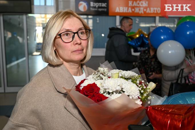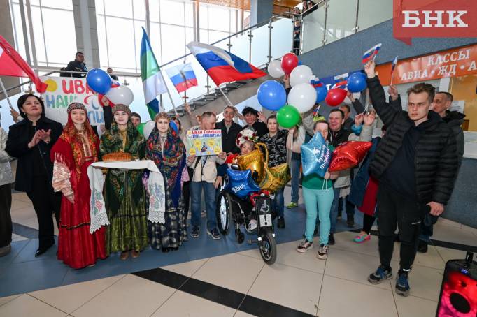Рейс, которым Иван Голубков прилетел в Сыктывкар, приземлился около 8 утра. В фойе аэропорта лыжника встречали с флагами, цветами, плакатами, шарами. Среди тех, кто пожелал в числе первых приветствовать чемпиона, были воспитанники кочпонского интерната, где он вырос, учащиеся гуманитарно-педагогического колледжа, члены «Движения Первых».