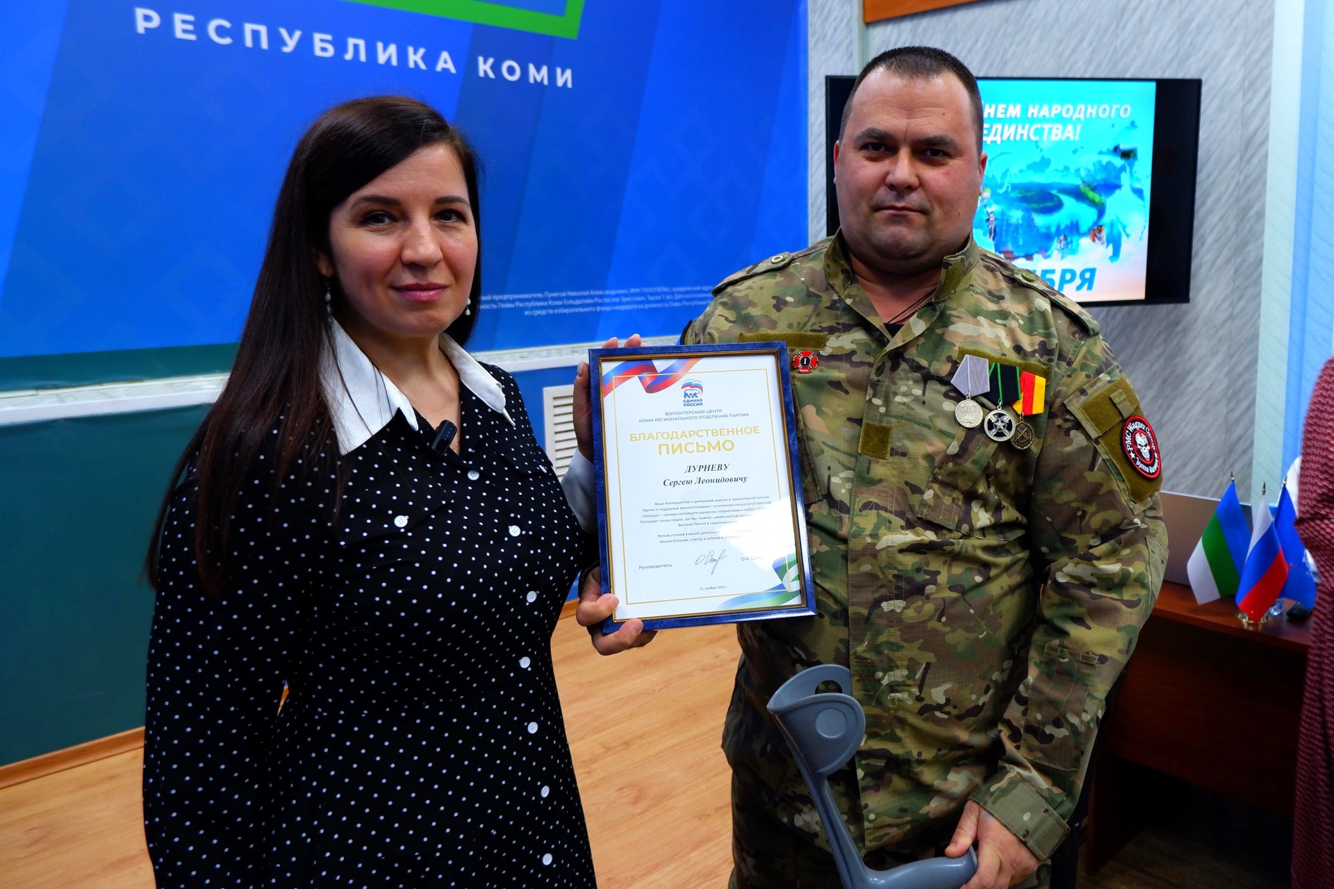Она вручила благодарственные письма за искреннее стремление помогать военнослужащим и участие в гуманитарных проектах: землячеству коми-ижемцев «Изьватас», Союзу Армян России в Республике Коми, КРОД «Землячество Прилузье», представительству главы Чеченской Республики в Республике Коми, а также ГОУ ДПО «Коми республиканскому институту развития образования».