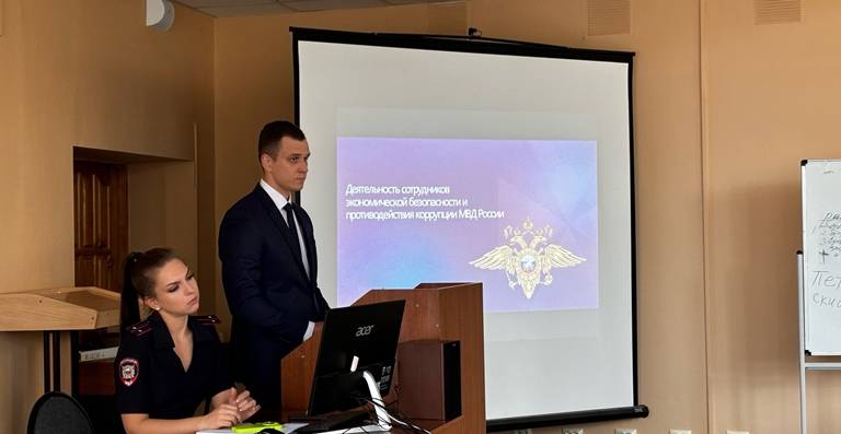9 октября в Юридическом институте СГУ им. Питирима Сорокина состоялся профориентационный информационно-образовательный семинар «Деятельность правоохранительных органов в сфере противодействия коррупции». Спикерами встречи выступили Яков Улыбин, оперуполномоченный отдела экономической безопасности и противодействия коррупции и Яна Франц, специалист по воспитательной работе группы морально-психологического обеспечения Отдела по работе с личным составом УМВД России по городу Сыктывкару.