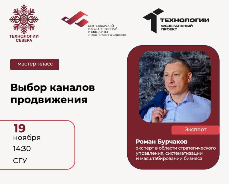 19 ноября в 14.30 в рамках акселерационной программы «Технологии Севера» состоится Мастер-класс “Выбор каналов продвижения”.