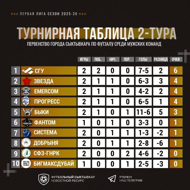 Сборная команда по мини-футболу СГУ им. Питирима Сорокина 1 ноября примет участие в очередном туре Первой лиги. Игра пройдет против команды «Звезда».