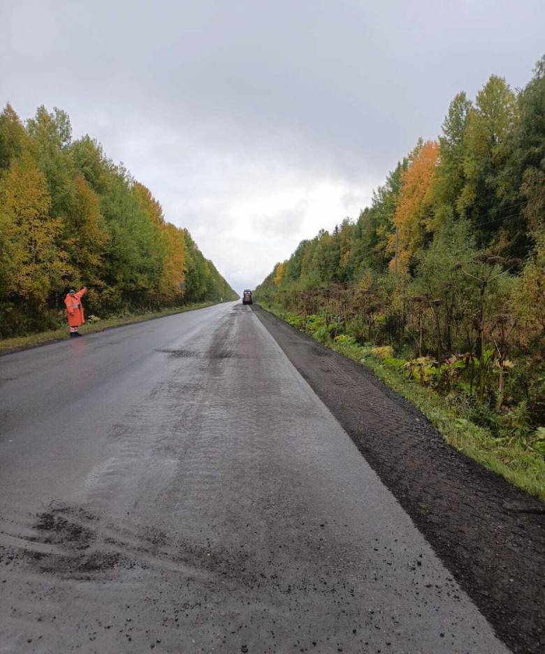 На 6-километровом под Ухтой выполнили работы по устранению колейности методом ремонта картами