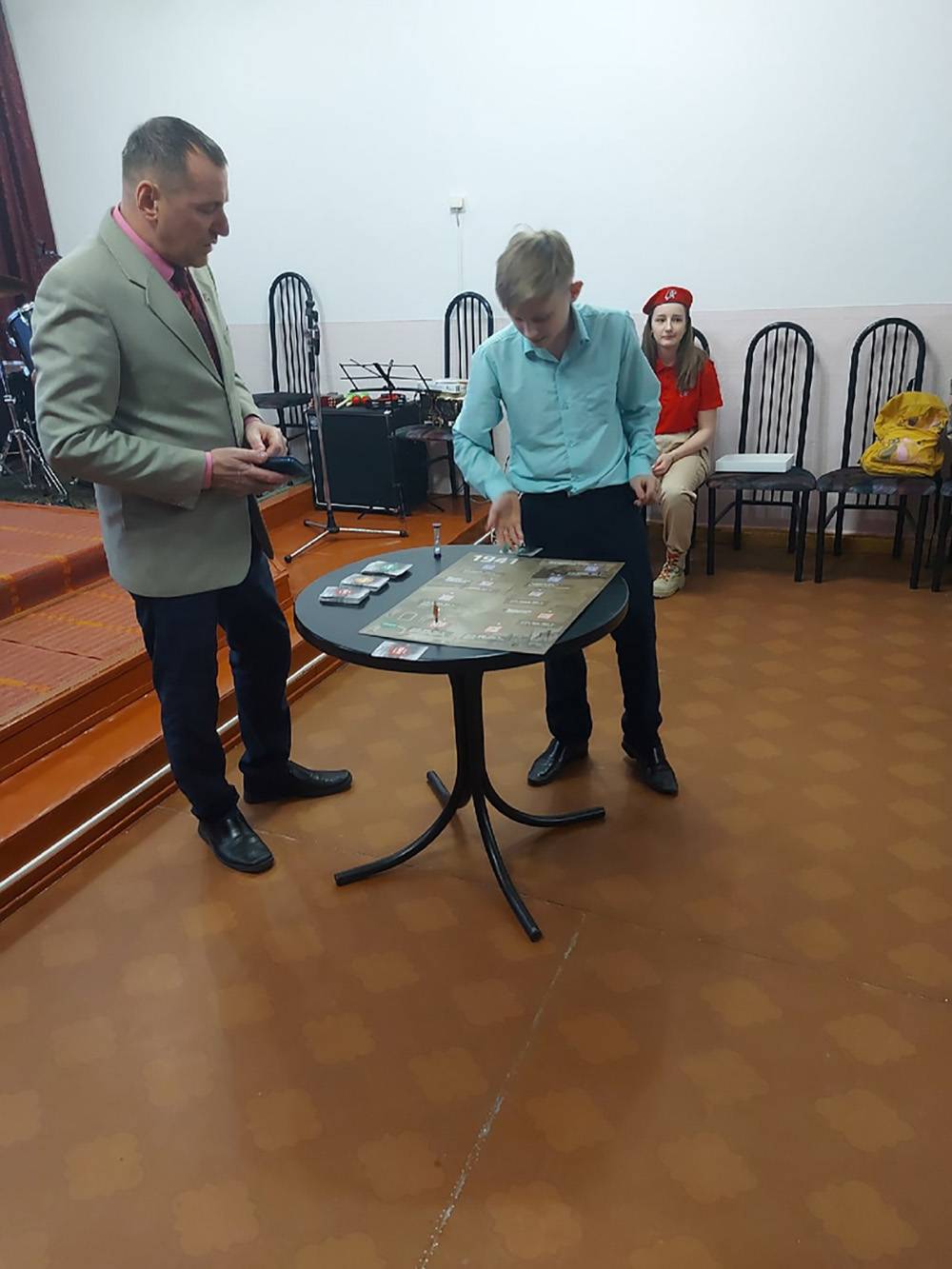 Немногим позже в камерном зале КСП «Суббота» те же ребята из движения «Юнармия» стали соведущими Сергея Локтионова в уроке мужества. Участниками мероприятия стали шестиклассники.