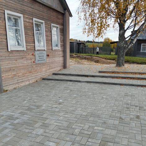 По окончании основных строительных работ жители села провели субботник по уборке мусора. Теперь новая брусчатка улучшила прилегающую территорию, а две оригинальные скамейки уже доставляют радость посетителям дома-музея.