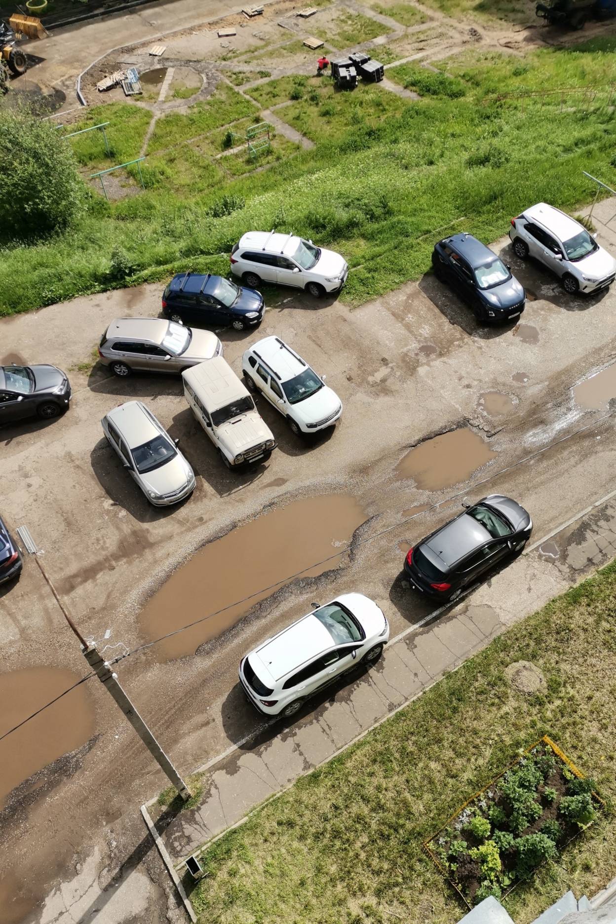 На фотографиях с места можно увидеть «кратеры»: гигантские лужи после дождя заполнены водой, из-за этого затруднено движение автомобилей и пешеходов.
