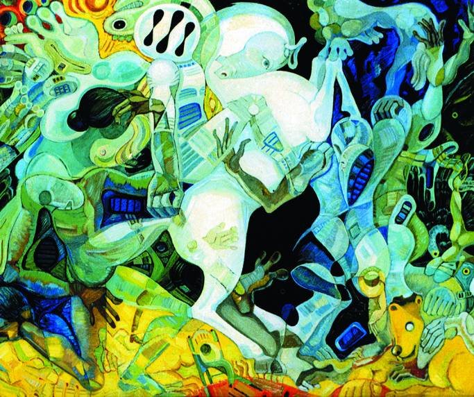 Город абсурда (Подсознательное). Картон, темпера