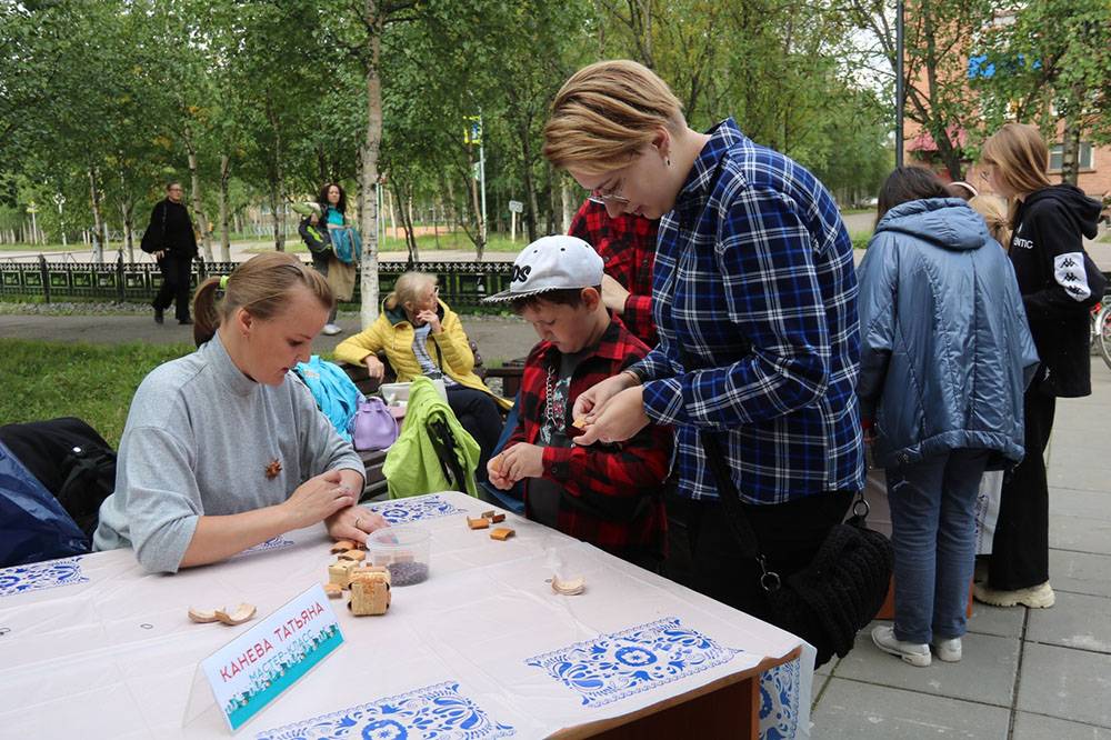 На этноплощадке, в которую превратился на время библиотечный сквер, разместилась ярмарка мастеров, чьи участники подарили гостям праздника несколько увлекательных мастер-классов. Под руководством мастера Елены Антоновой каждый желающий мог расписать румяный пряничек.