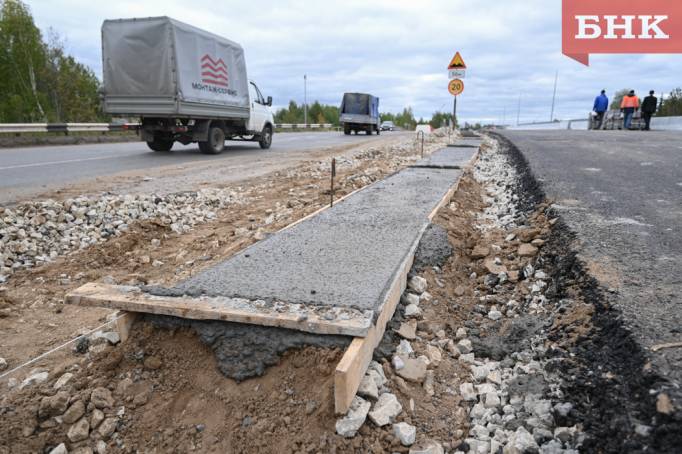 К первой декаде сентября строители успели сделать подходы со стороны Октябрьского проспекта и местечка Човью, парапетное ограждение, тротуары, укрепление откосов. Отставание не удалось ликвидировать, сейчас оно около 80 дней. Врио руководителя администрации Сыктывкара Максим Мартышин сообщил, что повлияло на это много субъективных факторов: выявление дополнительных работ, согласование с железнодорожниками. Для ускорения создали дорожную карту, где определено, сколько сил и средств нужно для завершения объекта.