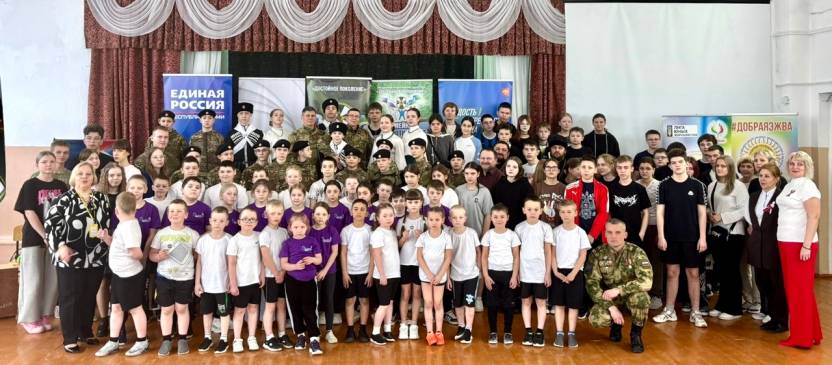 Патриотический десант «Достойное поколение» собрал самых активных и патриотичных детей, подростков и педагогов района в школе №1 посёлка Жешарт.