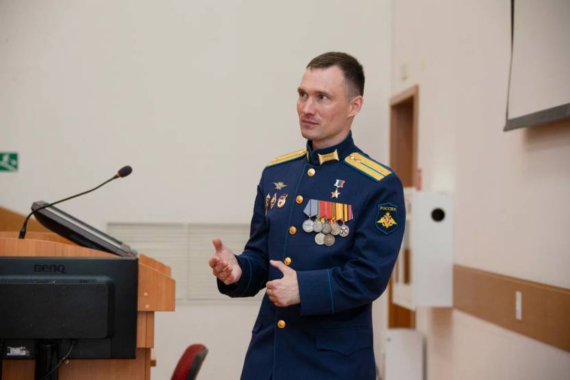Уроженец Коми, выпускник Рязанского высшего воздушно-десантного командного училища, обладатель «Золотой звезды» и медали «За отвагу!» выступил перед собравшимися и рассказал о своей службе, начиная с 2014 года и о подвигах, совершенных в зоне СВО.