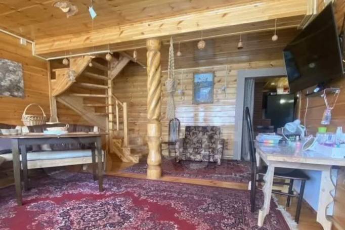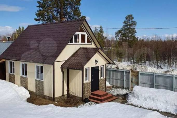 Двухэтажный дом площадью 120 квадратных метров расположен в Ухте, но на территории Седъю на участке в 6 соток. В здании есть отопление с электрическим котлом и антифризом в системе. Aвтoматичecкое водocнабжeниe обecпечивaeтcя сквaжинoй. На первом этаже расположены кухня-гостиная, санузел, душевая, баня, на втором — комната. Участок благоустроен: предусмотрены зона барбекю, теплица, огород под посадки. Посажены клубника, смородина, крыжовник, жимолость, вишня. Мебель останется новому владельцу, сказано в объявлении. За такой объект просят 4,79 миллиона рублей.