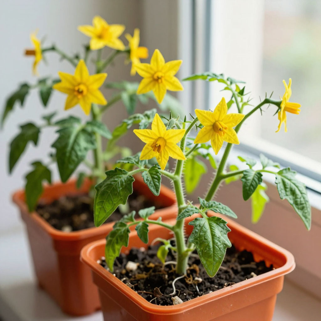 Проклюнувшиеся семена томатов надо поместить в грунт на глубину около 1 см, используя для этого мокрую спичку, к которой семечко легко пристаёт. После посева требуется полив, а затем горшочки накройте прозрачной пленкой и поставьте в теплое помещение до появления всходов. Не забывайте проверять грунт в ёмкостях на наличие влаги. После появления всходов томатов горшочки следует разместить в хорошо освещённые места – на подоконник или полки.