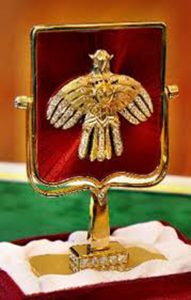 — Разработать эскиз мы попросили старых мастеров, участвовавших в создании высшей награды Великой Отечественной — ордена Победы, — рассказал «Трибуне» один из тогдашних руководителей «Терры-2» Владислав Шеметько. — Изготовили реликвию мастера ЗАО «Ювелиринторг». На герб ушло 330 граммов золота и 150 бриллиантов…
