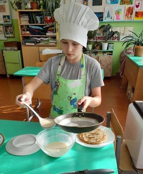 Первый этап этого увлекательного путешествия посвящён русской кухне. Ребята из 4-5 классов под руководством учителя Костиной Риммы Григорьевны представили яркие образцы традиционной русской кулинарии, начав с символичного угощения — блинов.