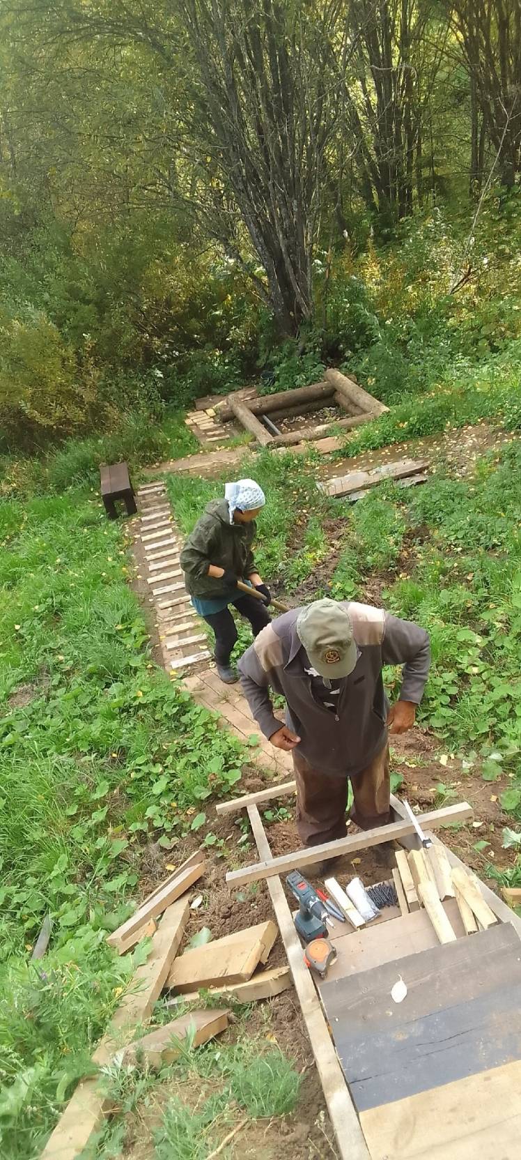Работали добровольцы в основном в выходные, так что восстановление длилось 2-3 месяца. Удалось отремонтировать подход к источнику, почистили территорию вокруг родника, заменили сгнивший поклонный крест, поставили столик и скамеечки. Материалы сначала закупала сама Наталия Томова, потом их понемногу приносили волонтеры.
