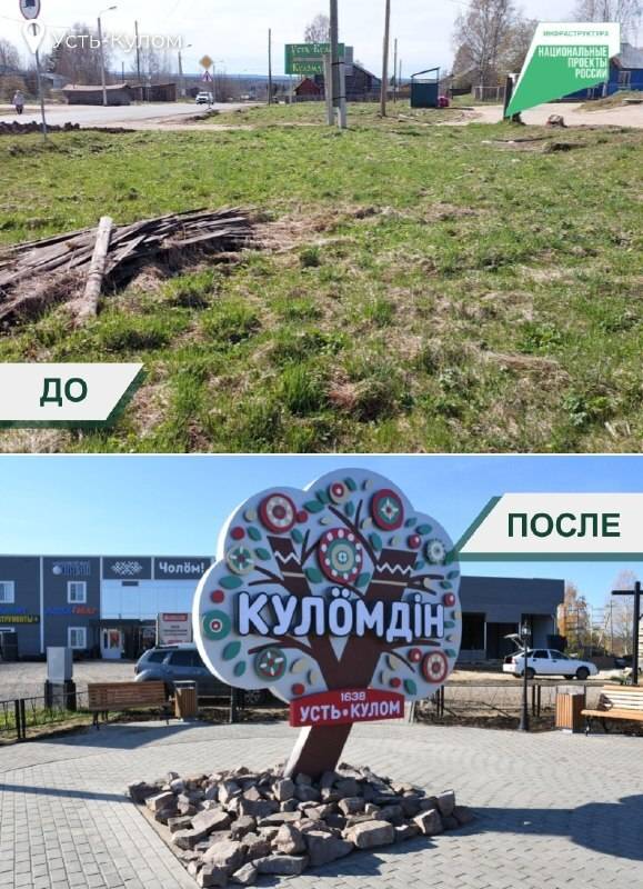 Это пешеходная зона возле Дома культуры и проезд по ул. Коммунальной в селе Помоздино, установка спортивной площадки в п. Кебанъёль, обустройство проезда по ул. Д. Каликовой в Югыдяге. Также завершились работы по обновлению въездной зоны по ул. Пожегодская в село Усть-Кулом: проведено устройство бортовых камней, освещения, выполнено покрытие из брусчатки, устройство входной группы и реставрация креста, установка скамьи-лодки, ограждения, вазонов, урн и скамеек.