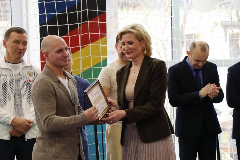Приветствовала и пожелала спортсменам упорной и зрелищной борьбы заместитель руководителя администрации Инты Елена Моторина. По поручению депутата государственного совета республики Коми Магомедова Руслана она вручила денежный сертификат на развитие вольной борьбы в Инте.