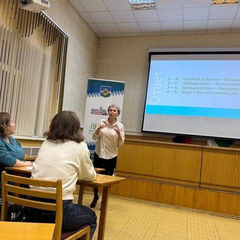 Игроки в составе команд «Молодые избиратели», «Твой выбор», «Актив плюс» и «Парламент» по очереди выбирали категории и вопросы, которые отображались на экране, затем проверяли свои ответы на правильность! Если ответ был неверным, право на ответ переходило команде, первой поднявшей руку! Наталия Владимировна, выступившая в роли ведущей, комментировала ответы команд, добавляя их интересными фактами.
