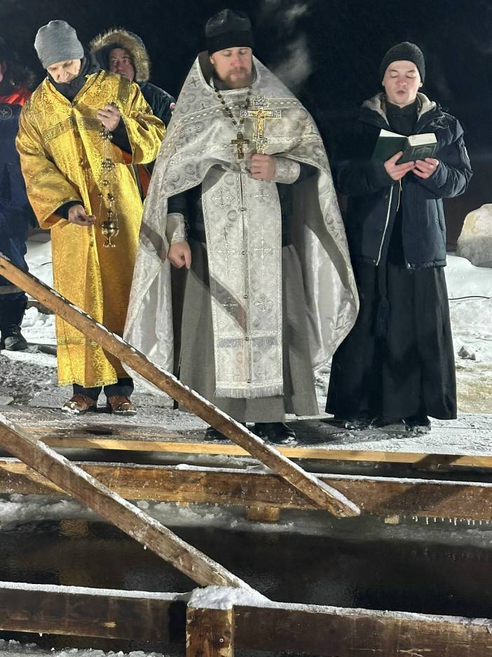 По данным администрации Усинска, в месте оборудования купели на реке Черной толщина льда 18 января составила 40 сантиметров. Дежурили спасатели, медики, сотрудники правоохранительных органов и дружинники. Сначала провели крестный ход и освящение воды.