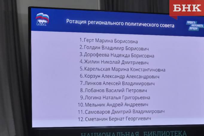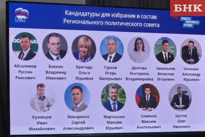После делегаты конференции тайным голосованием добавили в президиум политсовета председателя правительства Коми Дмитрия Братыненко, депутата Госсовета Коми Владимира Блохина, руководителя администрации главы Коми Максима Семенова и его заместителя Екатерину Долгову, главу Усинска Николая Такаева и мэра Сыктывкара Максима Мартышина.