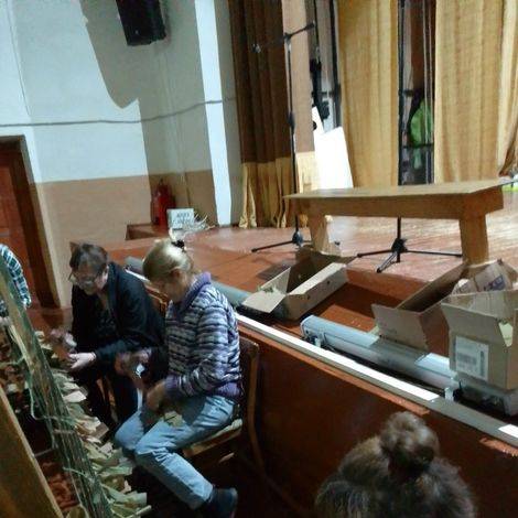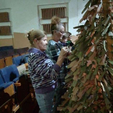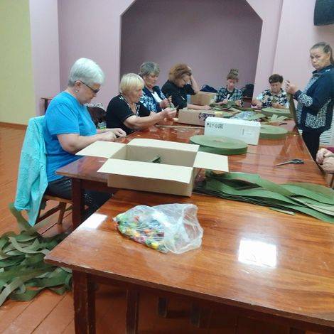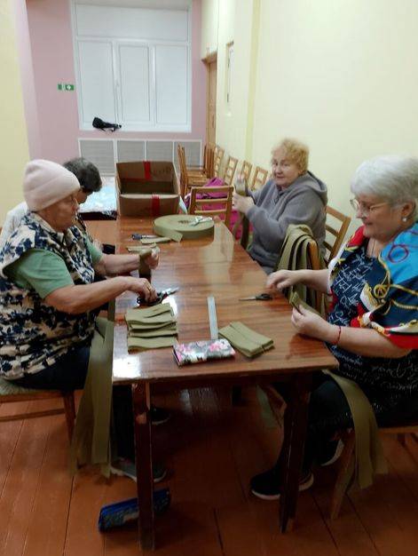 Своих не бросаем. Ветераны пст.Подзь не считаясь со временем режут ленты и плетут маскировочные сети.