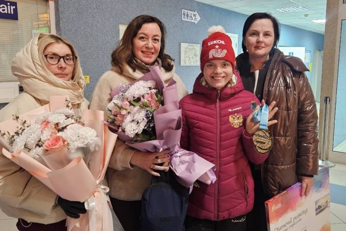 Лыжница прилетела в Сыктывкар после состязаний в Щучинске, где она получила золото во всех трех дисциплинах.