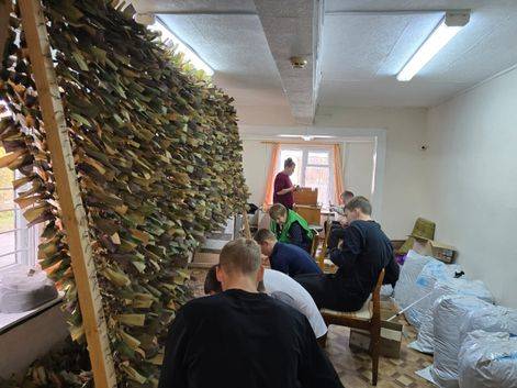 26 сентября ребята из 11 б класса Вершинин Денис, Григорчук Дмитрий, Истомин Ратмир, Карманов Семён, Клёус Святослав, Костин Игнат, Лодыгин Илья, Руссков Денис, Матвеев Даниил, Торопов Митрий, Торопов Ярослав с энтузиазмом взялись за плетение маскировочных сетей для бойцов, участвующих в СВО. До 15 октября необходимо изготовить ещё 5 сетей. Работы очень много, а рук не хватает.