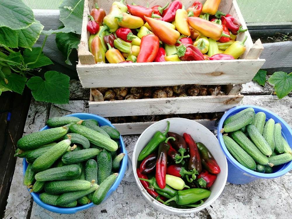Фото богатого урожая овощей, которые вырастила Надежда Филиппова. Здесь и кабачки, и огурцы, и перец.